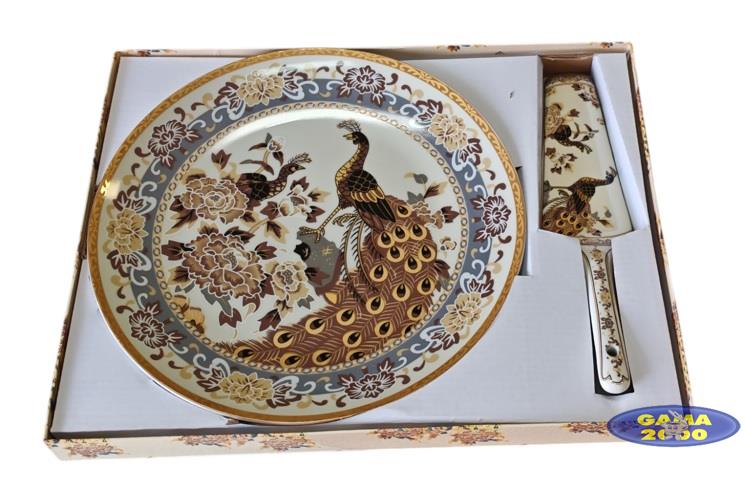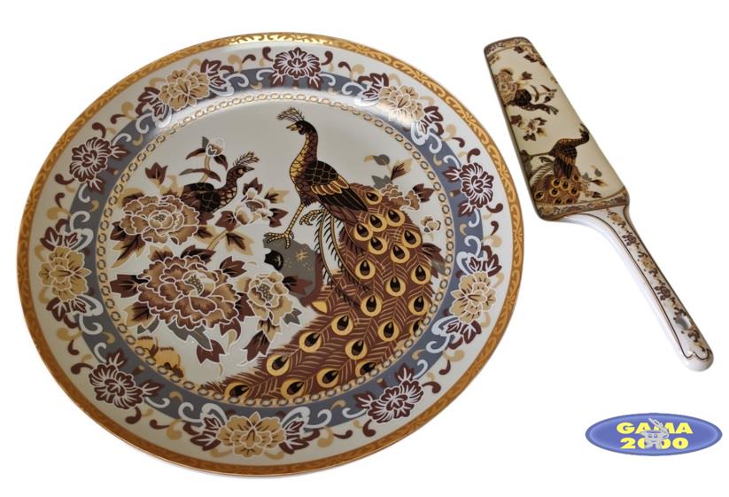 Zestaw wykonany jest z porcelany, zdobionej wzorem.