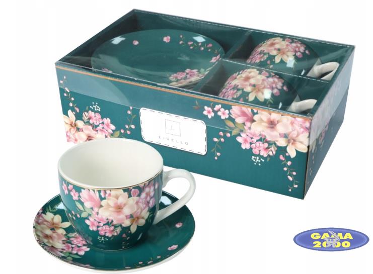 W skład kompletu wchodzą 2 filiżanki oraz 2 spodki.