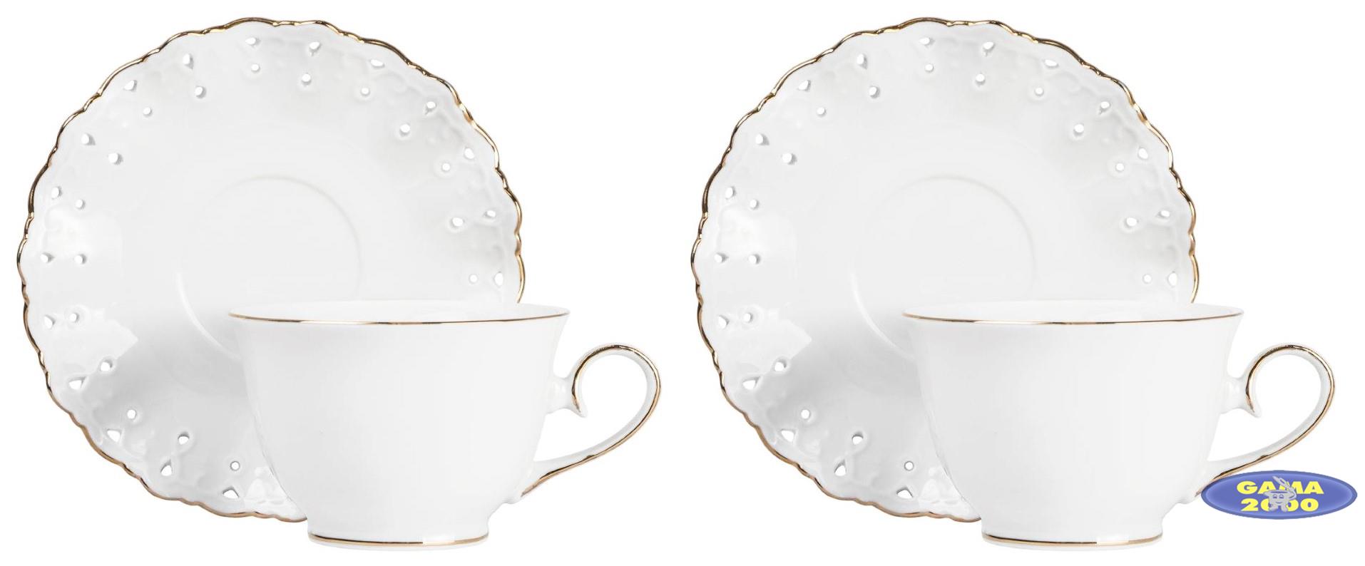 W skład kompletu wchodzą 2 filiżanki oraz 2 spodki.