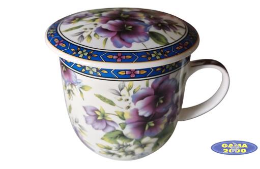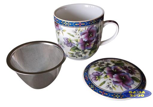 Kubek wyposażony jest w ceramiczną pokrywkę oraz metalowe sitko.
