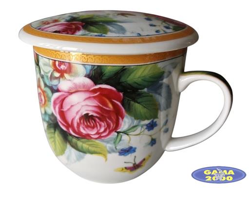 Kubek wyposażony jest w ceramiczną pokrywkę oraz metalowe sitko.