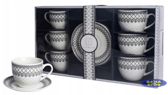 W skład kompletu wchodzi 6 filiżanek oraz 6 spodków.