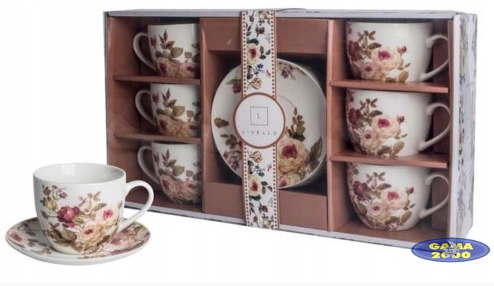 W skład kompletu wchodzi 6 filiżanek oraz 6 spodków.
