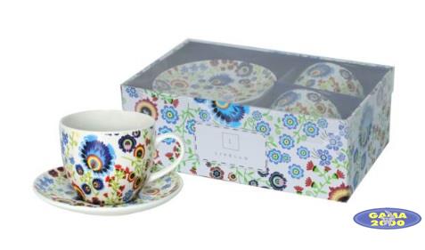 W skład kompletu wchodzą 2 filiżanki oraz 2 spodki.